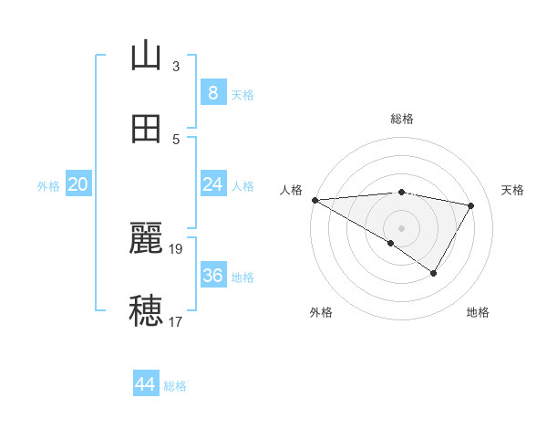 山田 麗穂さんを姓名の画数から五運を鑑定