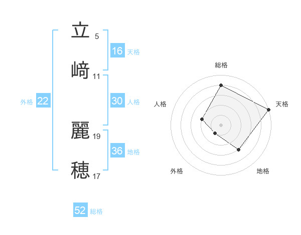 立﨑 麗穂さんの総格は52画の4点