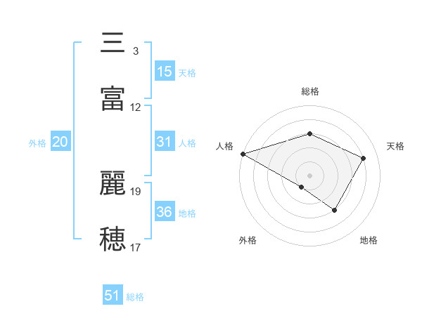 三富 麗穂さんの総格は51画の3点!