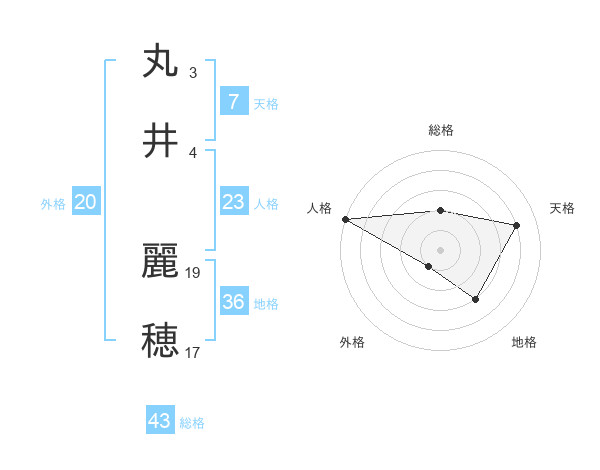 丸井 麗穂さんを姓名の画数から五運を鑑定