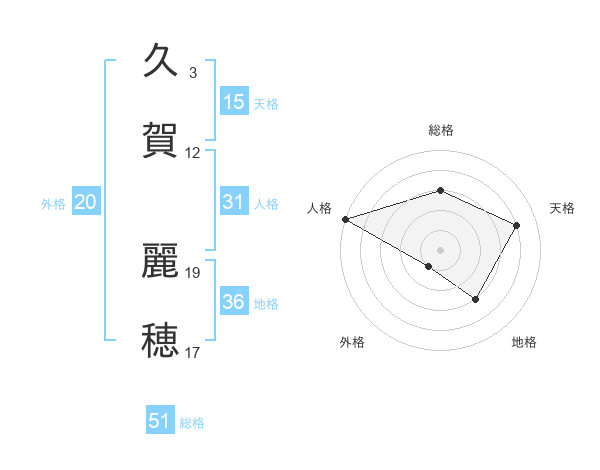 久賀 麗穂さんの総格は51画の3点!