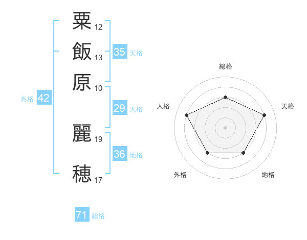 粟飯原 麗穂さんを姓名の画数から五運を鑑定