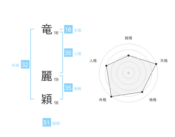 竜 麗穎さんの総格は51画の3点!