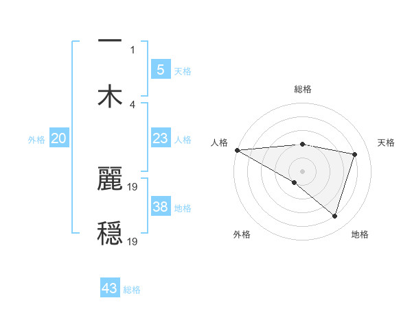 一木 麗穏さんの外格は20画の1点!