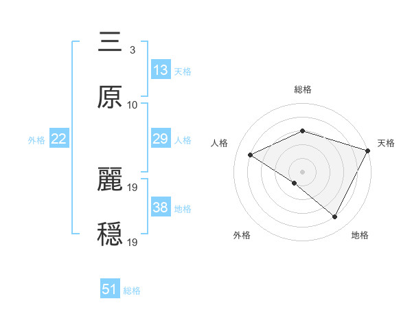 三原 麗穏さんの総格は51画の3点!