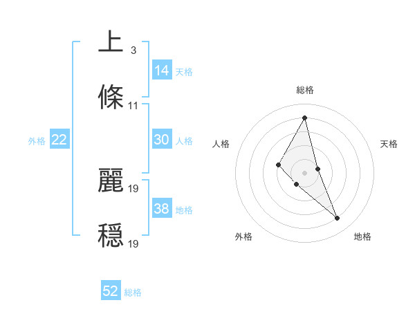上條 麗穏さんを姓名の画数から五運を鑑定