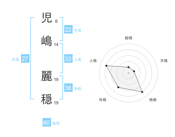 児嶋 麗穏さんを姓名の画数から五運を鑑定