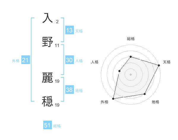 入野 麗穏さんの総格は51画の3点!