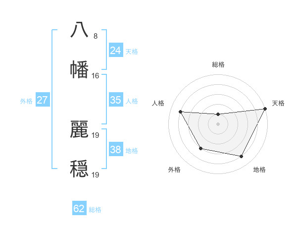 八幡 麗穏さんを姓名の画数から五運を鑑定