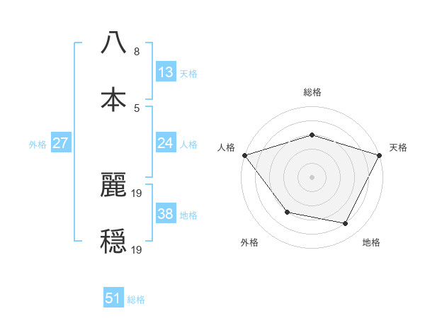 八本 麗穏さんを姓名の画数から五運を鑑定