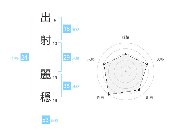 出射 麗穏さんの総格は53画の3点!