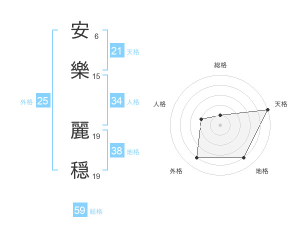 安樂 麗穏さんの天格は21画の5点!