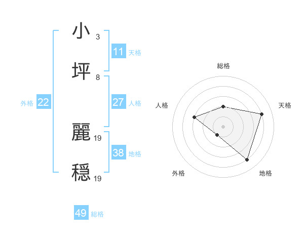 小坪 麗穏さんの外格は22画の1点!