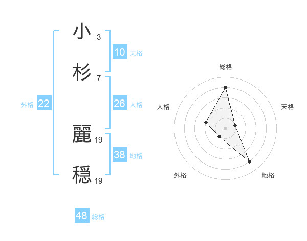 小杉 麗穏さんを姓名の画数から五運を鑑定