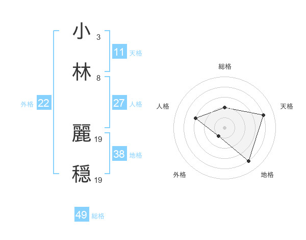 小林 麗穏さんの外格は22画の1点!