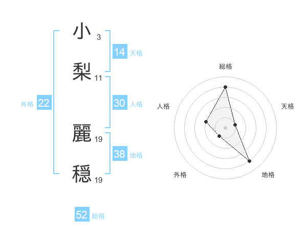 小梨 麗穏さんを姓名の画数から五運を鑑定
