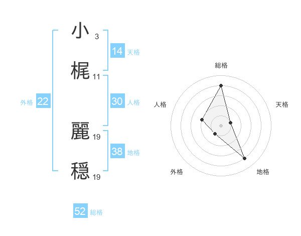 小梶 麗穏さんの総格は52画の4点!