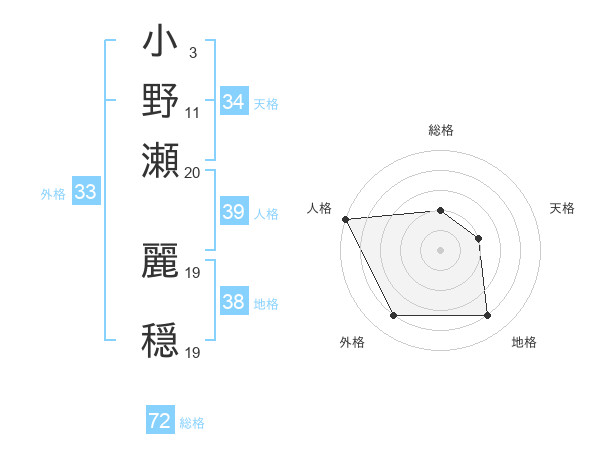 小野瀬 麗穏さんの総格は72画の2点!