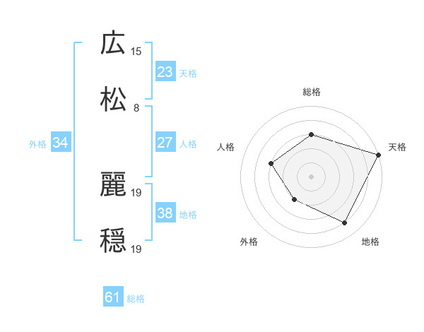 広松 麗穏さんの天格は23画の5点!