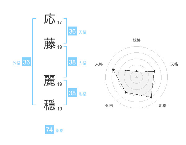 応藤 麗穏さんの総格は74画の1点!