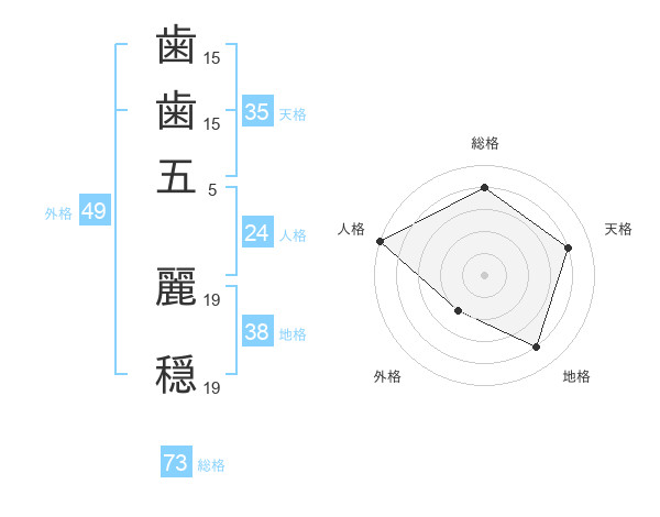 歯歯五 麗穏さんを姓名の画数から五運を鑑定