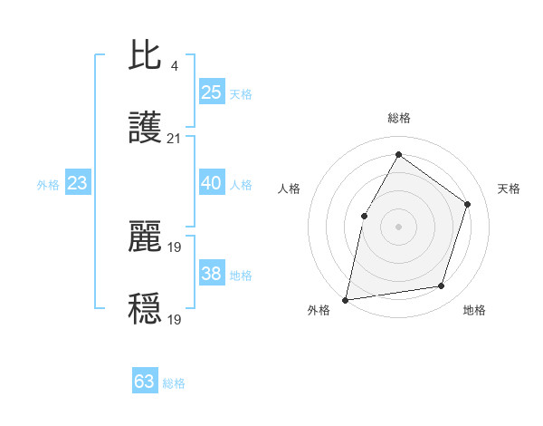 比護 麗穏さんの天格は25画の4点!