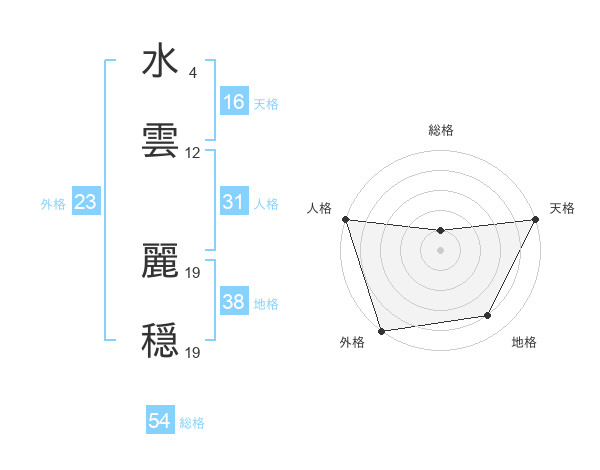 水雲 麗穏さんの総格は54画の1点!
