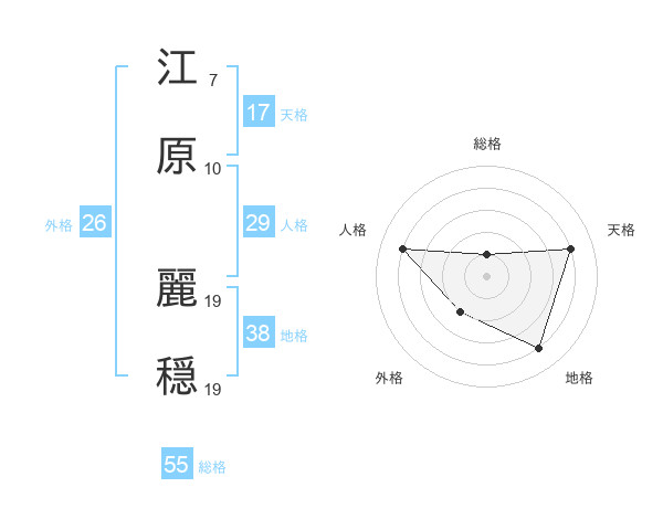 江原 麗穏さんの総格は55画の1点!
