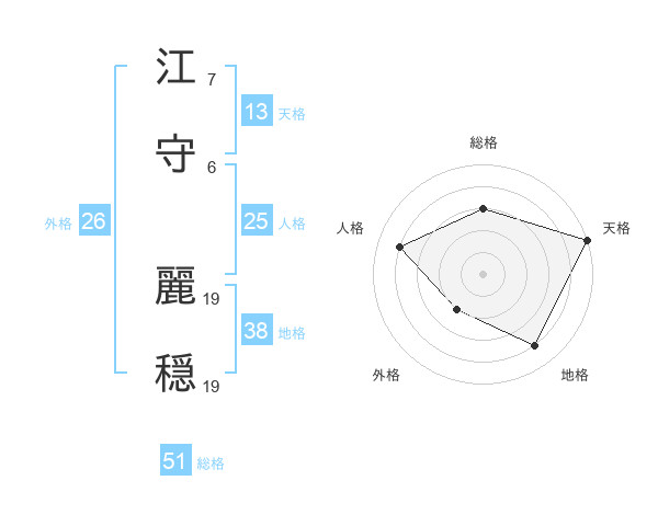 江守 麗穏さんの総格は51画の3点!