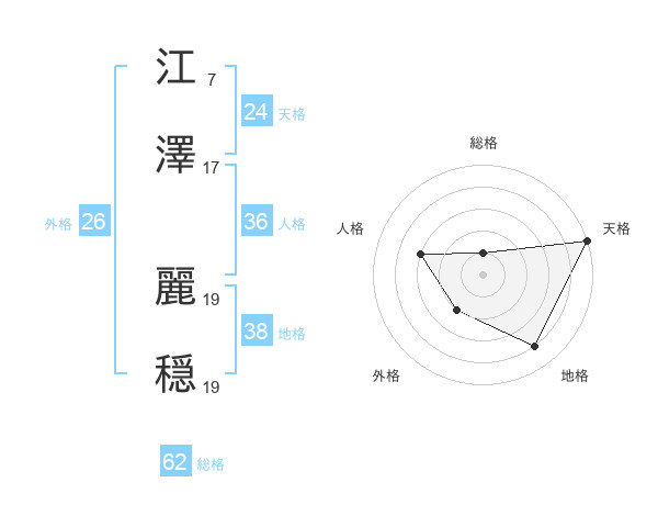 江澤 麗穏さんを姓名の画数から五運を鑑定