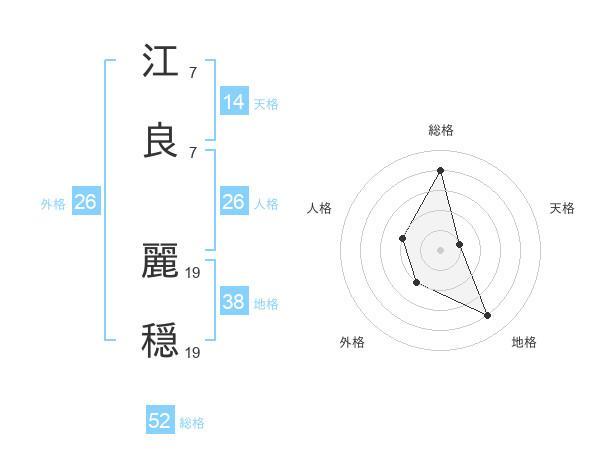 江良 麗穏さんを姓名の画数から五運を鑑定