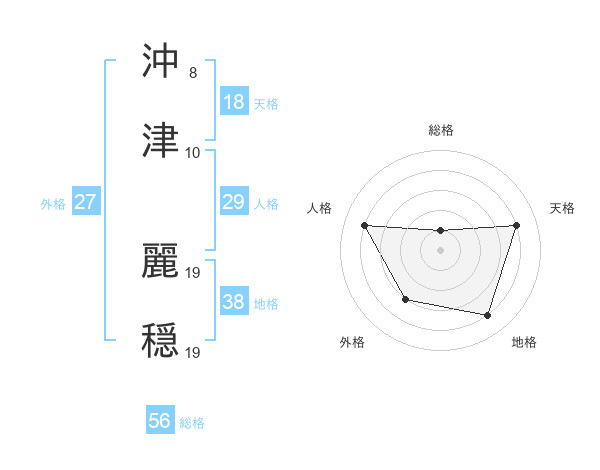 沖津 麗穏さんの地格は38画の4点!