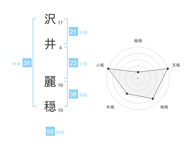 沢井 麗穏さんの天格は21画の5点!