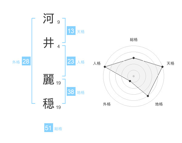 河井 麗穏さんを姓名の画数から五運を鑑定