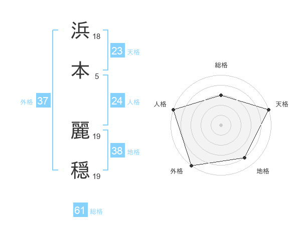 浜本 麗穏さんの外格は37画の5点!