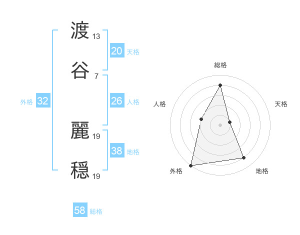 渡谷 麗穏さんの外格は32画の5点!