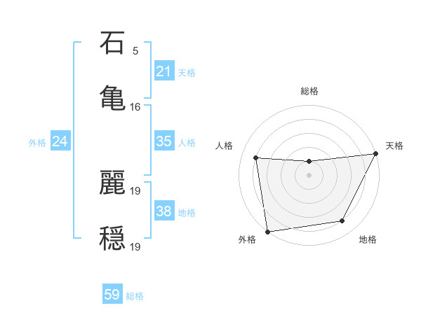 石亀 麗穏さんを姓名の画数から五運を鑑定
