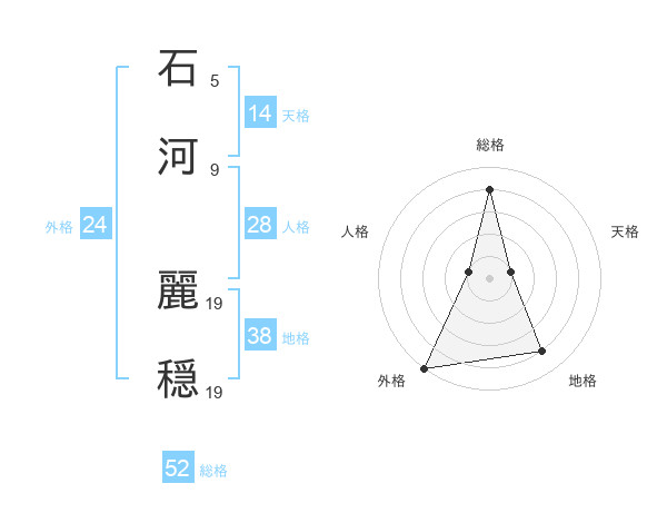 石河 麗穏さんの総格は52画の4点!