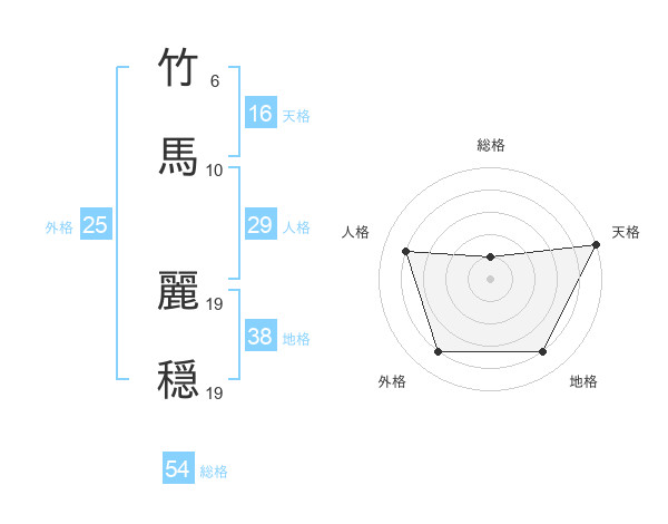 竹馬 麗穏さんを姓名の画数から五運を鑑定
