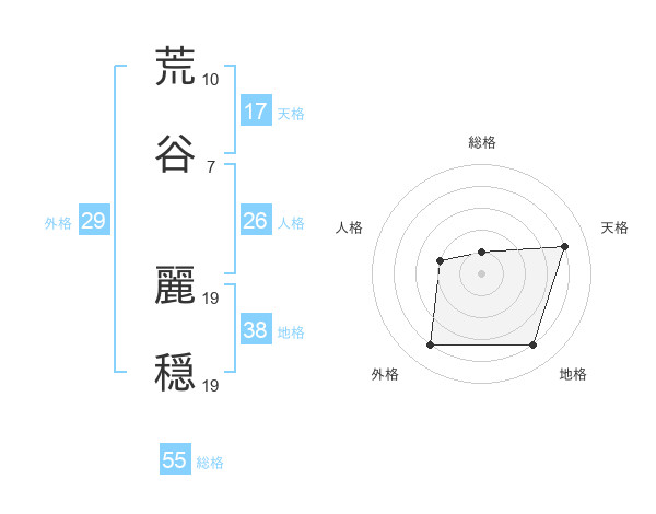 荒谷 麗穏さんを姓名の画数から五運を鑑定