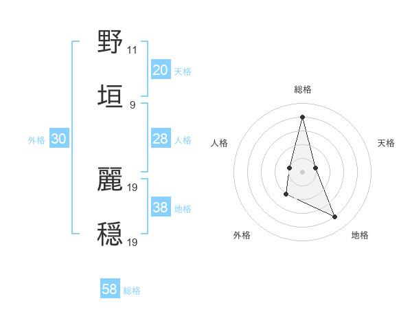 野垣 麗穏さんを姓名の画数から五運を鑑定