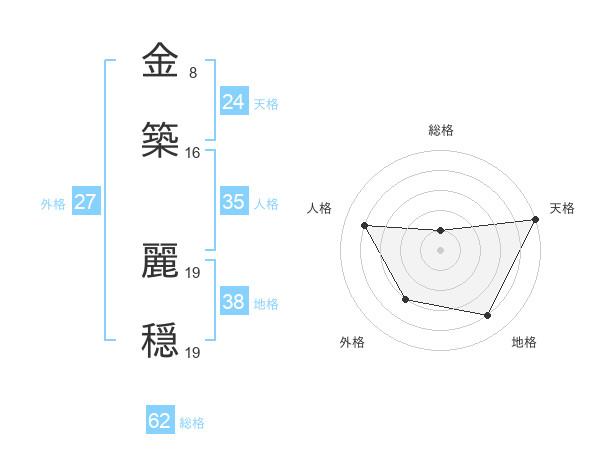 金築 麗穏さんの天格は24画の5点!