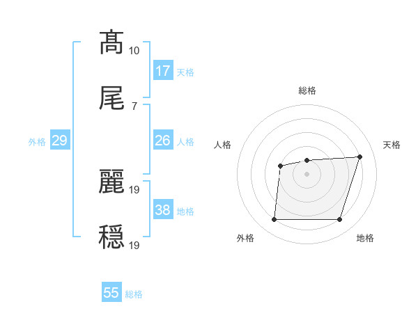髙尾 麗穏さんの天格は17画の4点!