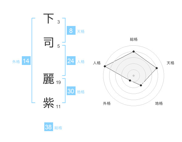 下司 麗紫さんの総格は38画の4点!