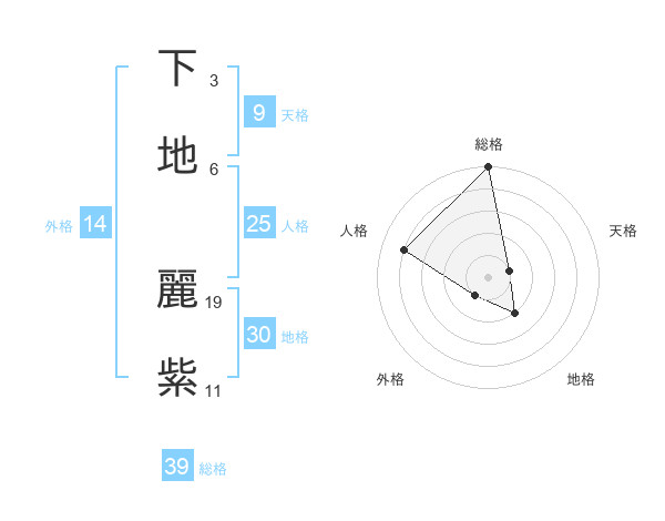 下地 麗紫さんを姓名の画数から五運を鑑定