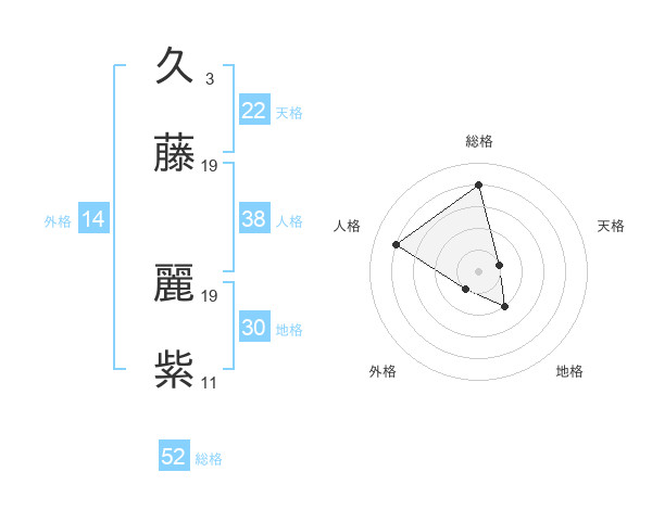 久藤 麗紫さんを姓名の画数から五運を鑑定