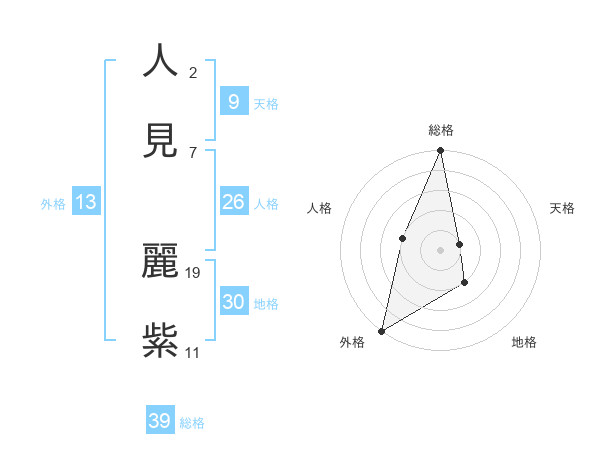 人見 麗紫さんの総格は39画の5点!