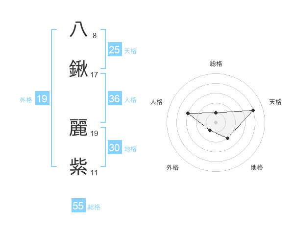 八鍬 麗紫さんの総格は55画の1点!