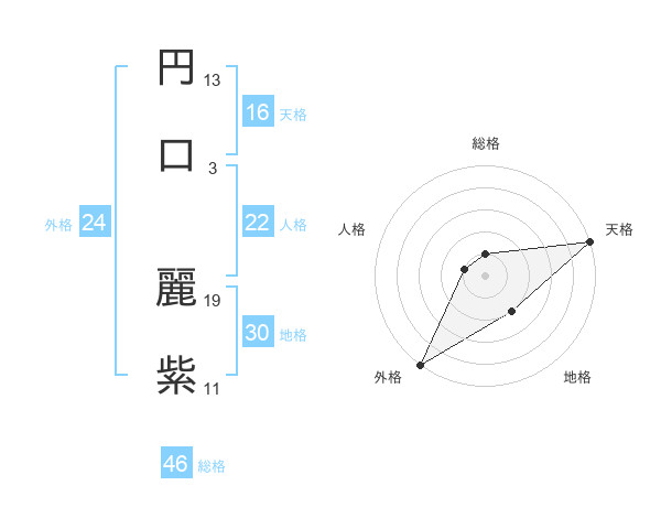 円口 麗紫さんを姓名の画数から五運を鑑定