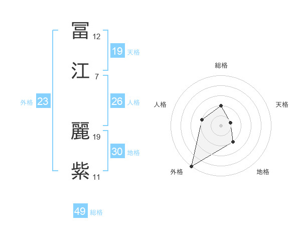 冨江 麗紫さんを姓名の画数から五運を鑑定